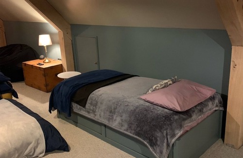 A luxurious open plan detached barn (upstairs only). with 3 beds, kitchen and shower room. Located 2 miles from Marlow and 4 miles from Henley-on-Thames. Well positioned for beautiful country walks (gate from property directly into woodland) and walking distance to the River Thames. Parking for 2 cars. Wifi.
