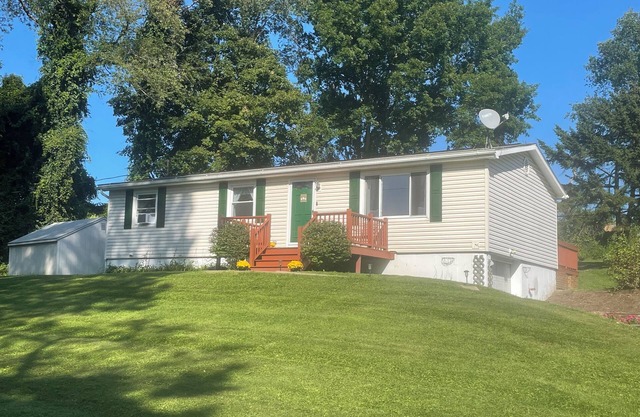 Step outside to discover a covered porch furnished with comfortable seating, complete with love seats and chairs. Two picnic tables offer a scenic spot to enjoy meals while taking in views of the picturesque valley. Additionally, there's a firepit located in a charming roundabout area, nestled between two ponds, perfect for cozy evenings under the stars.