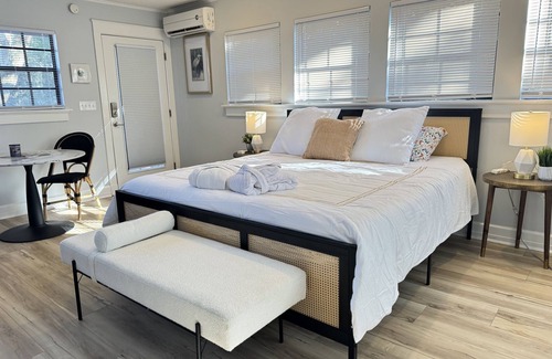 Indulge in the comfort of our guest house, where a king-size bed, full bath, and a cozy pull out (queen size) couch await you. 🛌🛁🛋️ Every amenity has been thoughtfully curated to create a home away from home ambiance. Bike or golf cart ($50/day add on rental) to the nearby ocean in just minutes, savor the coastal breeze, and let the rhythmic waves serenade you – you can even hear the ocean from the yard! 🚴♂️🌊✨ In addition, enjoy soaking in the hot tub surrounded by nature.