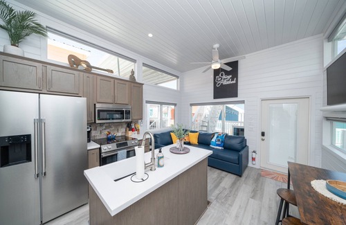 Set in the heart of Roadrunner Resort, 'Guitars and Tiki Bars' delivers the perfect mix of laid-back vibes, riverfront beauty, and fun-filled adventure. This spacious 2-bedroom, 2-bathroom bungalow accommodates up to 6 guests, featuring two queen-size beds and a cozy pull-out sofa bed—ideal for families and friends looking to escape to a tropical-inspired retreat with a musical twist.