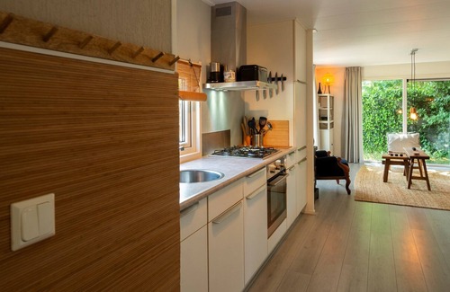 The chalet, built in 2016, is comfortably furnished and equipped with all modern conveniences. It is ideally suited for 2 adults and 3 children. Inside, you’ll find a cozy living room with a charming gas stove and French doors leading to the garden. The spacious garden surrounds the house, allowing you to enjoy sunshine, peace, and nature all day long. Through a small gate, you’re directly on the bike path behind the park, which leads you to the De Flipjes playground or the beautiful North Sea beach. Your pet is also very welcome! The garden is fully enclosed, so your pet can stay safely within the property.