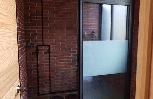 Habitación doble para 4 personas, 2 literas matrimoniales, BAÑO privado, areas para compartir: área de fogata , jardín frontal , sala de juegos de mesa , lectura , asador, agua caliente , comedor.