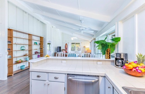 This heavenly Hanalei cottage allows easy access to activities such as surfing in Hanalei Bay and kayaking or stand-up paddling on the Hanalei River. Just a two-block stroll from Hanalei town, the home is also conveniently close to restaurants, shops, and grocery stores surrounded by stunning scenery. Hiking, boating, ziplining, horseback riding and many other activities are nearby, as well.