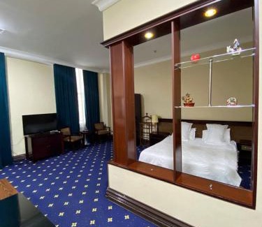 Hamkor hotel has a shared lounge, terrace, a restaurant and bar in Andijan. The property has room service and a 24-hour front desk for guests. The rooms come with air conditioning, a flat-screen TV with satellite channels, a fridge, a electric tea pot, a shower, free toiletries and a desk. Featuring a private bathroom with a hairdryer, rooms at the hotel also feature free WiFi, while some have a city view. The rooms have a closet. Hamkor hotel offers a buffet or halal breakfast. Andijan Airport is 5 miles from the property.