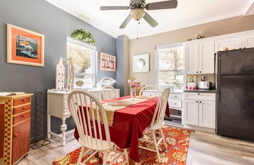 Dining room & cozy living room with streaming TV