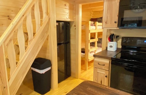 Enjoy your stay at the all new Happy Bear luxury Log Cabin. Sleeps up to six people. Fully equipped kitchen including stove, microwave, toaster, coffee pot and refrigerator. Relax on the couch overlooking the flat screen television with dvd/blu ray player . Wifi included with your stay. Sleep well in the Happy Bear Log Cabins private bedroom, the master includes a Queen bed on the main level. Second bedroom is right outside the master with a twin bunkbed. The third bedroom is in the loft with a Queen mattress. The cabin is tastefully decorated with bears and carries a rustic theme throughout. Enjoy the day or evening on the Happy Bear Log Cabins front porch, in the hot tub or around the fire-pit, firewood is included with your stay.