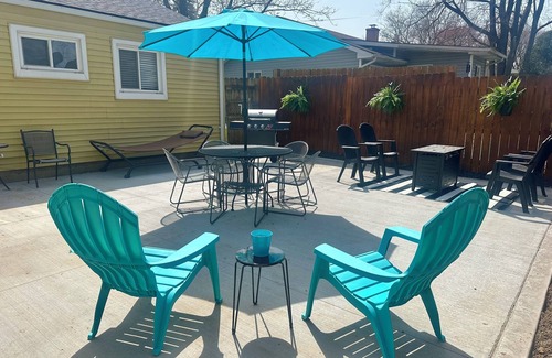 Delightful large backyard with patio for dining & relaxing (BBQ, fire table, hammock, fire table, yard games...)