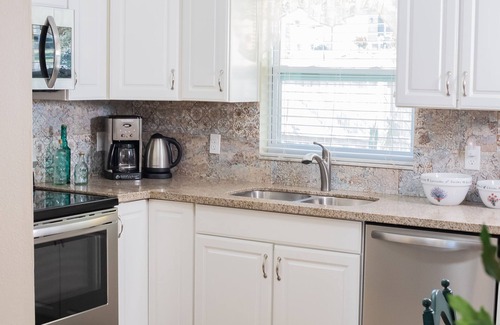 Upscale, near popular downtown Safety Harbor! Welcome to our delightful mixture of antiques and modern conveniences! This "Victorian Sweetheart" has a Victorian flavor along with a romantic fireplace, generous California King size bed and cozy chefs eat in kitchen. In this completely remodeled duplex you have the option of an intimate getaway - or along with the "Tropical Oasis" (also on Vrbo) join with family and/or friends to explore together this quaint little bay side town about two blocks away!