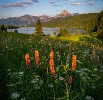 This family-run hotel is a beautiful Alpine-style building in Hopfen am See, 3.1 mi from Füssen. Guests enjoy free use of the sauna, steam room and indoor swimming pool. A balcony or terrace with Alpine views is featured in some rooms at Hartungs Hoteldorf. Rooms also include a TV and a private bathroom, and some offer a direct view of the Hopfensee Lake. Free Wi-Fi is now available in all rooms and reception. All food served in the panoramic restaurant is prepared from locally farmed ingredients. Guests can enjoy a buffet breakfast as well as a selection of regional dishes for lunch and dinner. On-site parking is free at Hartungs Hoteldorf, and the A7 motorway is 10 minutes away. The royal palaces of Neuschwanstein and Hohenschwangau can be reached in 15 minutes.