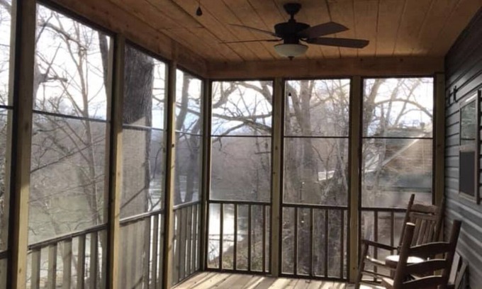 This newly constructed cabin sits on the banks of the Little Red River, on a great stretch of the river for trout fishing or kayaking. The cabin is beautifully decorated with all the features of home. The kitchen, living area, master bedroom and bath are located upstairs for a great view of the river. The kitchen is equipped with new appliances, all the utensils, dishes, and cooking tools you will need. Master bedroom is furnished with very comfortable king size bed, wall mounted tv. The master bath has a beautiful big walk-in shower. You can enjoy the river view from inside in the living area or step outside to a huge screened in deck. Downstairs the guest bedroom is furnished with a king size bed, tv . There is a bonus room with a queen bed in it with enough room for a blow up mattress if you wanted to bring one, for a extra guest. The guest full bath is also located down stairs. The utility room has washer and dryer and is located down stairs as well. You can also walk out the back door to the downstairs deck. There is a carport to put your boat in out of the weather if needed. If it’s front porch sitting you enjoy, you will love the huge porch on the front of the cabin to relax and take in the beautiful country scenery. The cabin is at the end of a dead end road in a very quite area 1/2 mile from the boat launch at Ramsey Landing with lots of wildlife. Outside there is a covered area equipped with charcoal grills for grilling. It also has a private dock for fishing, parking your boat, or just relaxing.