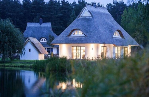Luxurious thatched roof house in a very idyllic location on the lagoon, just 100 meters from the water. Enjoy your vacation right from the start and relax in the sauna or in front of the fireplace. Wi-Fi and satellite TV with Sky provide variety. In the summer months you can relax in peace and quiet at the natural swimming area - just 170 meters away on the Bodden waters or take a trip to the lively Baltic Sea beach in Zingst, which is 17 kilometers away. Around the lagoon, picturesque villages and a unique landscape are waiting to be discovered by you. The communities of Fuhlendorf and Bodstedt are very idyllic on the southern Bodden coast. In the warmer seasons, passenger ships travel daily from Bodstedt to the Darß peninsula to Born and on through the Neuendorfer Bülten to Ahrenshoop-Althagen. Highlights included: All consumption-based energy costs, bed linen and towels sauna WIRELESS INTERNET ACCESS Firewood (initial supply) Activities nearby: The small neighboring community of Bodstedt with its traditional harbor is known for the Zeesen boats based there. Individual owners of Zeesen boats offer rides and you shouldn't miss an opportunity like this! The big Bodstedt Zeesenboot regatta has started on the first weekend in September every year since 1965.