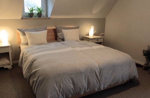 The lovingly furnished, bright apartment is located on the first floor of our apartment building and offers an excellent starting point for extensive hiking tours on the very well signposted dream loops in the Saarland-Hunsrück hiking region. The central location of the apartment enables our guests to travel relatively short distances to attractive destinations. The gem city of Idar-Oberstein can be reached in 15 minutes by car. But a trip to the Moselle wine region, with its many castles and small, rustic wine towns, is also highly recommended and can be reached in 30 minutes. The oldest city in Germany, Trier, is 50 km away and definitely worth a trip. Hahn Airport is about a 20-minute drive from our house. The equipment of the apartment includes: a flat screen, free WiFi, a new, well-equipped kitchen with dishwasher, microwave, toaster and coffee machine, information material on various hiking tours and tourist attractions. You can also use the large garden with a barbecue, outdoor seating and garden loungers. A washing machine and dryer can be used, after prior agreement.