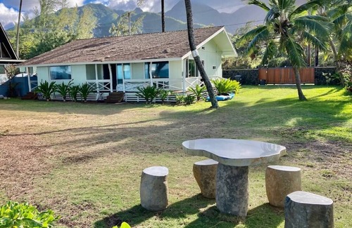 Ultimate tropical escape into your own paradise. Great work-from-home spot with hi-speed internet/wifi and HD TV. This one-of-a-kind Beachfront House on the northeast shore of Oahu is wonderful for swimming, extensive beach walks, or just sitting on the porch watching the sun rise right in front of the house! Swim with turtles, or seals if you are lucky, that you can encounter in front of the house. You`ll have a great time at this comfortable place to stay. 30-day minimum.
