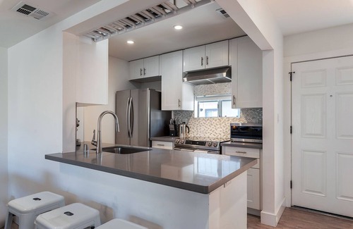 Condo completely remodeled and newly furnished in late 2017, this immaculate condo is just 2 blocks from Healdsburg's desirable downtown! Relax on stylish, comfortable furniture and enjoy high end linens. Sonos sound system and wall mounted TV for your entertainment needs with a sleek gas fireplace for cozy winter nights. Central heat and air along with dimmable lighting will ensure your environment is comfortable. The remodeled kitchen includes a built-in wine rack, quartz countertops and stainless steel appliances.
