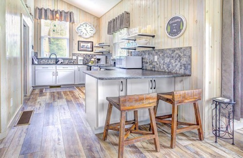 Private luxurious accommodations in the heart of Hocking Hills. Our Depot on 664 is a nod to Pickerington, Ohio's T&OC station with a posh twist! We have created an indoor oasis of relaxation just for your romantic getaway. The space was created with an organic feel, "cave" like luxury tiled shower and LVP flooring throughout. Attention is given to high-end luxury complete with a Kinetico Soft Water system, luscious towels, fine linen bedding and furnishings. A washer/dryer unit is neatly tucked away in the large bathroom for your convenience. Do you love to watch nature and wildlife as it happens? Windows are everywhere, so you won't miss a thing! Step outside to your private patio, relax by your bonfire while being serenaded by the resident bull frogs. Enjoy a cup of coffee while watching the flurry of activity around the bird feeders. Enjoy grilling your favorite meal on your private gas grill that is cleaned after each guest. The kitchen, fully stocked with all cooking essentials, you just provide your favorite food. You're just minutes away from restaurants and eateries including wineries, breweries and privately owned coffee shops. If watching a good movie or your favorite TV series is what sounds good to you, we have that covered, too. A Roku 65" TV is hung perfectly for viewing from the Station Agent's Amish built swivel chairs or snuggled up with your honey in the luxurious king size bed. Speaking of the king size bed, all bedding from the mattress topper to the pillow shams and bedspread is fresh for each and every guest. As your host we want you to have a five-star experience in our Depot. We take pride in providing a white glove spa like lodging.