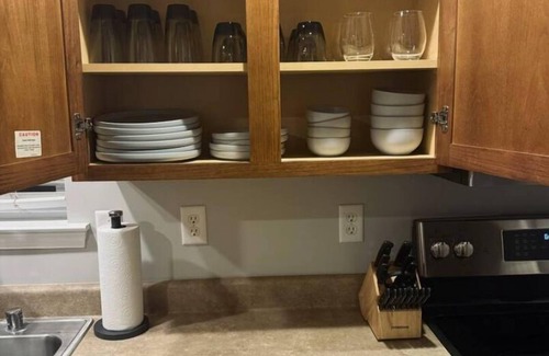 The kitchen is fully stocked with all the things needed to accommodate for cooking large dinners or just popping meals in the microwave!