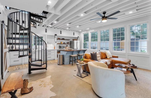 - Main bedroom (upstairs, on its own level): king bed, Smart TV, ensuite bathroom