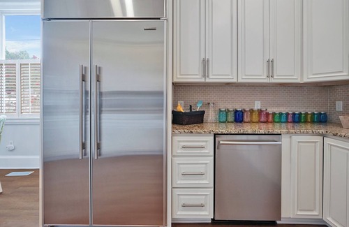 With 2,900 sq ft of living space and high ceilings, there’s plenty of room for gatherings of up to 9 people. There are many windows throughout the home and natural light pours in, giving the home a cheerful atmosphere.