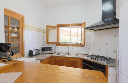 In a quiet location in Santa Eulalia del Rio, Villa Can Caseres is divided into two houses: one with 3 bedrooms for 6 people and another with 4 bedrooms for 8 people. This charming accommodation, featuring well-preserved wooden ceilings and stone walls, is ideal for holidays with friends or the whole family. The property includes 2 living rooms, a well-equipped kitchen, and 5 bathrooms (3 of them en suite), comfortably accommodating up to 14 guests. Amenities include Wi-Fi, fans, satellite TV, 2 baby beds, and 2 highchairs. Outside, a beautiful 63 m² saltwater pool invites you to cool off after sunbathing. You can enjoy meals at the long table on the patio, which is beautifully illuminated in the evening, or simply relax in the holiday atmosphere created by the Mediterranean plants. The large garden with fruit trees and a wide lawn offers plenty of space to unwind, and there are soccer goals, a basketball court, a tennis court, and a ping-pong table for sporting activities. A bar, a restaurant, and a supermarket are just 650 meters or an 8-minute walk from the accommodation, and Cala Pada beach is only 2.3 km away, offering a fantastic spot for beachgoers. Diving and snorkeling courses are also available for an extra fee.