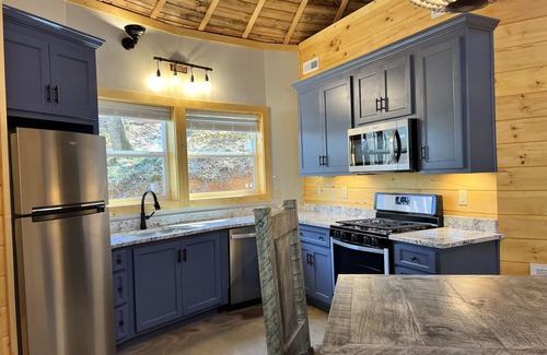 With upscale rustic furnishings and polished concrete floor, you and your sweetheart will love this romantic getaway in the scenic western North Carolina mountains. The attention to detail is evident in all the thoughtful touches found throughout the yurt.