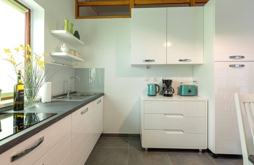 The house is ideal for a family or for 5-6 people, consisting of 2 bedrooms, a living room, a kitchen and a bathroom. It has just been modernly designed and fully equipped. You can relax on a spacious balcony and gaze at the city lights while enjoying either your morning coffee or a glass of wine in the evening. The guests have their private swimming pool to enjoy. While relaxing in the swimming pool the view spreads between the olive and cherry trees onto the city of Split. The guests can also relax in the garden or orchard, where they can freely help themselves with the seasonal fruit and vegetables and prepare a meal in a fully equipped and modern kitchen. The guests will be served with homemade high-quality virgin oil produced from the olives here from the olive garden.