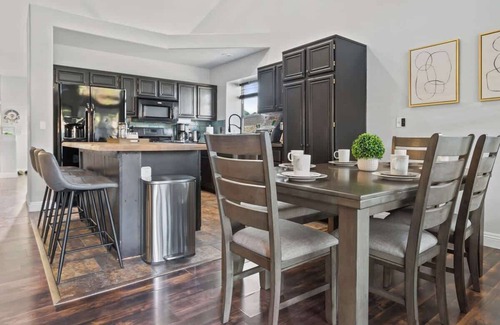 Take advantage of high-speed wireless internet, a fully equipped, spacious kitchen for family dinners, and don't forget to include your furry friend! Our airy, open concept lends itself to group gatherings and endless entertainment. Easy, convenient access to the famous Las Vegas Strip and beautiful local golf clubs and restaurants surrounding the neighborhood make our stunning home an easy choice!