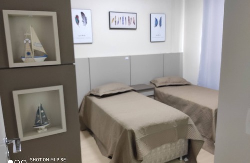 Fit with 4 suites all with split and smart tv with wired internet and Wi-Fi of 120 megs. Two suites with king and queen beds and two with single box beds that can be doubles and an accessory box bed (6 box beds)). Large dining room, living room and barbecue in 3 rooms with split and smart tv with full sky. Full kitchen and laundry area with washing machine and dryer. Two individual parking spaces. Very close to supermarket, pharmacies, restaurants and bakery 24 h.