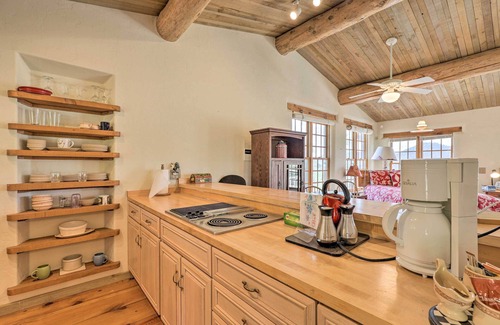 Your beautiful outdoor retreat awaits at this cozy studio, perched on the cusp of Prescott National Forest! With a full bathroom, a well-equipped kitchen, and a private balcony, this stunning vacation rental is a certified gem. Enjoy the mountain views while reading your favorite book in the hammock, warm up by the fireplace, or head into town and check out the nightlife on Whiskey Row. Want to get outside? Explore the beauty of Thumb Butte or hit the links on one of the nearby golf courses!