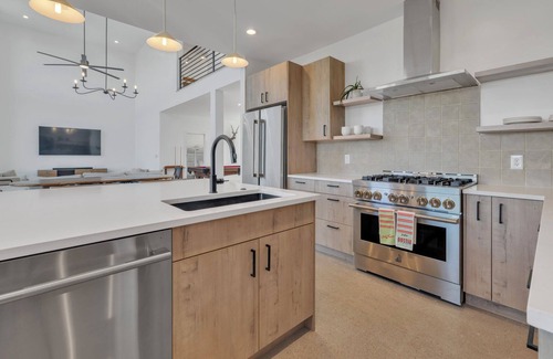 Welcome to The Spicy Pickle! This brand-new home was just completed this fall and is truly one-of-a-kind! Nestled within a ravine along the Pedernales River, the property spans over 2.5 acres of land and boasts breathtaking views of the Texas Hill Country. You will feel 1,000 miles away while still being close to all of the exciting outdoor activities Spicewood and Lake Travis have to offer. The house consists of 4 bedrooms and 3 bathrooms and is complete with everything you could need, whether you are enjoying a nice staycation away from the City or experiencing the Austin area for the first time. Cool off in the luxurious pool while you catch a game or watch a movie under the Gazebo! Work up a sweat on the pickleball court! Roast marshmallows at the fire pit adjacent to the river! Show off your meat smoking skills on the green egg! Enjoy a nice cocktail during a game of cutthroat on the pool table! Take out the paddle boards for a Pedernales adventure! With so many activities available, you may not ever want to leave the house; however, if you do, we have some great recommendations for you! Please get in contact with us about our Spicewood guide to help plan your week or weekend away. We are local and here to help make your stay in Spicewood a memorable one!