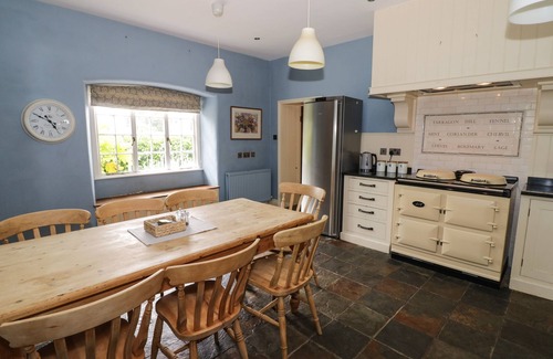 Amenities: EXTERNAL BARN. Gas central heating with 2 x woodburning stove. Kitchen with electric AGA, SMEG oven & grill, Microwave, 2 Fridges, Freezer, Washing Machine, Dishwasher. Bar/Games room with 2 x Smart TV, WiFi, Pool table & Dartboard. Male and female cloakrooms with basin and WC. Fuel and Power inc in rent. Bed linen and towels inc in rent. Travel cot and highchair are available on request. Off-road parking for up to five cars. Secure bike storage. Front patio garden fully secure with seating. Enclosed rear garden with lawn, barbecue and small pond. One well-behaved dog welcome. Sorry, no smoking. Shop 0.4 miles, pub 0.9 miles. Note: There is a small wildlife pond in the garden and a larger pond within the grounds, children and pets must be supervised. Note: Due to the age of the property some doorways are low, care to be taken, please consider this when booking. Note: No stag, hen or similar parties. Note: Max 10 people (including any infants per booking)