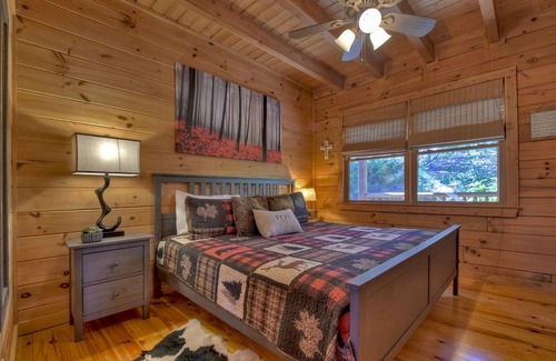 Hillin and Chillin features a rustic charm with modern amenities, such as a fully equipped kitchen, a washer and dryer, a gas grill, and free Wi-Fi. You can cozy up by the wood burning fireplace, watch your favorite shows on the flat-screen TV, or play some games in the fun-filled game room. The game room has an arcade game, a foosball table, a connect four game, and a play station.