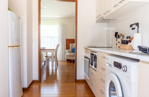 The spacious separate bedroom has a king bed with mattress topper (or book as twin singles), fresh linen, large wardrobe and lots of drawer space. The newly renovated bathroom has fresh towels and bathroom products provided for your convenience.