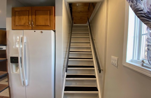 Just 5 minutes to the centre of the town of Stephenville and the Stephenville Airport. Close to quad and snowmobile trails, fishing rivers and an expansive outdoor area. Once inside the cottage, you can ejoy the open lower level with a washroom, open kitchen and cozy living room. Upstairs you will find wonderful views in the loft style bedroom with sitting area. Wireless internet provided. This is a quiet, relaxing place to stay after your day enjoying the wonderful outdoor activities available in the area. Don't forget to take advantage of the sledding hill out back and the small stream just outside the back door!