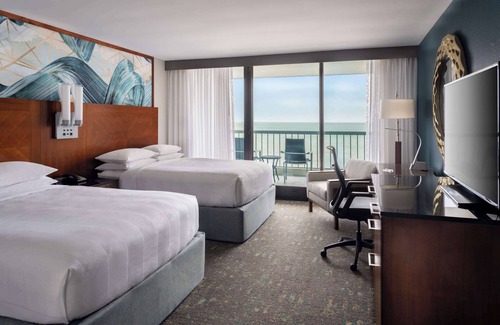 Hilton Beachfront Resort & Spa Hilton Head Island offers 513 accommodations with safes and coffee/tea makers. Rooms open to balconies. Beds feature pillowtop mattresses. 49-inch Smart televisions come with cable channels. Bathrooms include showers, bathrobes, complimentary toiletries, and hair dryers.