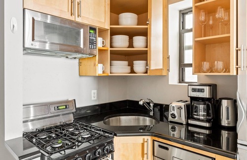 This furnished property is situated in Kips Bay. Stretching from the East River to Lexington Avenue, the peaceful neighborhood offers convenience and easy access to the rest of the city. Several hospitals are located here, making it a hub for medical care. Kips Bay offers dining options for every budget as well as numerous cinemas and fitness centers. During the weekends, locals stroll alongside the water, take the water taxi to another borough, or hang out in one of the parks, such as Bellevue South. From here, Rockefeller Center is only 20 minutes away by subway.