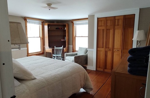 200 year old farmhouse located on the Lamoille River. River access and 12 acres to explore. We are approximately 20 minutes from downtown Burlington. The entire upstairs is for guests, 3 bedrooms, 1 bathroom, and living room area. Kitchen and dining room are shared spaces. There is an enclosed and exposed porch with a grill and pizza oven. Fire pit and hammock near the gardens out back with a view of our sweet goats, ducks, and chickens. We have private access to the river for kayaking, canoeing, and fishing. Private yoga classes are available either on the docks or in the gardens. If you're looking for quiet and serene, this property is ideal.