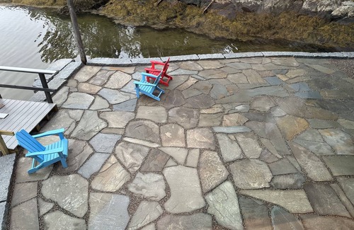 This rustic, historic boathouse located right on the water's edge has been converted into a lovely cottage, suitable for families, couples or a singular retreat. The boathouse was orginally constructed in the 1800s has a lot of character. The terrain is sloped creating a private retreat with on-site parking. The main floor sits adjacent to a stone pier and at high tide the property is actually over the water. It is an open floor plan with a charming living area, kitchen and dining area. A large row of windows provide unobstructed views up the river and the wood burning stove provides comfort on cold Maine days and nights in Spring and Fall. Step outside onto a large gravel-topped pier for outdoor dining at the picnic table, a fire pit, bbq grilling and water viewing. Step down to the shore to kayak or beachcomb.