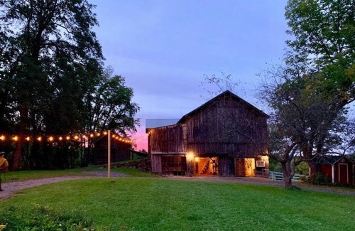 Historic Hudson Valley farmhouse with scenic barn and fire pit on a working farm | House in Greenville