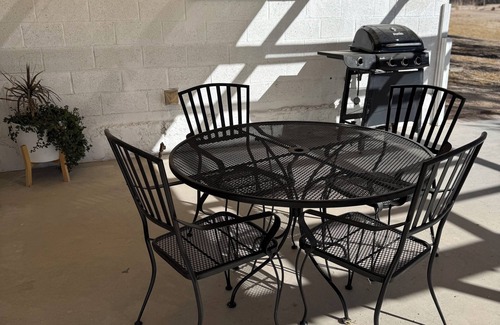 •Washer & dryer for guest convenience. Smart TV & Wi-Fi The Mercantile sits on a fully fenced half-acre, ideal for pets and kids to roam freely. Enjoy outdoor dining on the private back patio, or take in the quiet desert evenings under a canopy of stars. There’s a detached two-car garage and ample parking for RVs, toy haulers, and trailers.