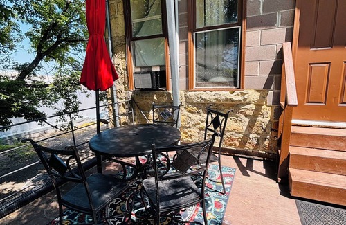 Nestled in downtown Belle Fourche, this delightful apartment features 1 cozy bedroom with a queen bed, a modern bathroom with a shower, and a charming living room with a comfy futon. The historic Shay Building is in the middle of all the fun! Head right across the street to access local shopping, all the most popular eateries, or relax at the bar next door. Our place is equipped for both long or short stays to make your holiday one to remember. You only need to bring yourself!