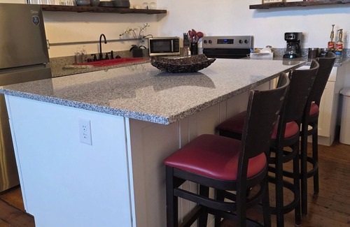 Escape to this unique apartment in the quaint river town of Vevay, Indian. This unit, originally Delaney's Saloon from the early 1800s, features 1 cozy bedroom with a queen bed and a roll away twin, open living area, and ceilings that sore. The large countertop island with bar stools make the kitchen the perfect gathering space! Enjoy the convenience of amenities like AC, WiFi, and a washing and dryer. Whether you're here for a relaxing getaway or exploring the local attractions, this quaint apartment is the perfect home base for your stay. And it is centrally located between Louisville and Cincinnati. I hope you enjoy what my place, Vevay, and the surrounding areas have to offer.