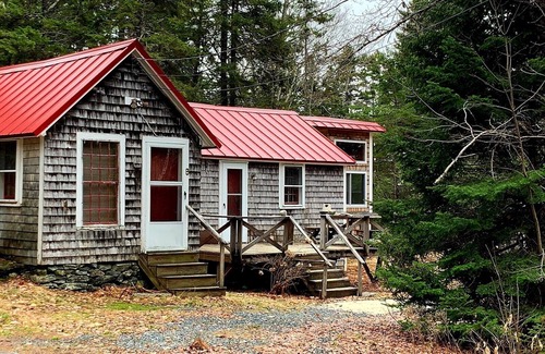 This rustic, cozy 2-bedroom cottage was originally a blacksmith shop. It has been converted to a Maine style "camp" with 1 queen bed and 2 twin beds (twin beds are not suitable for adults). It is very private on a large property. Enjoy ocean access to Contention Cove for beach combing, walking the shore and swimming. Eagle, deer and other nature abounds in this peaceful setting.