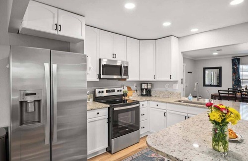 The kitchen is a culinary enthusiast's dream come true. Equipped with stainless steel appliances that gleam under the light, it offers ample counter space for meal preparation and culinary creativity. Whether you're whipping up a gourmet feast or preparing simple yet delightful dishes, this kitchen is your sanctuary of flavor.