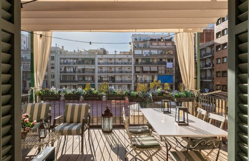 [Young groups please consider other acommodations] The colorful elegance that is the essence of Barcelona is manifested in this downtown flat, which is the perfect retreat to Spain s culture capital. After a day eating paella on the beach and witnessing breathless architecture, come back to relax to this 300 m² designer space featured in Architectural Digest and whose furniture was lent to Woody Allen for his film Vicky Cristina Barcelona.