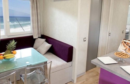 The terraces outside the mobile homes are furnished with a dining table and six chairs where you can eat and relax. We also offer 1 sunshade and 2 sunbeds on the beach free of charge.
