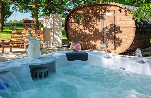 Enjoy your private, covered terrace as well as the shared garden with sandbox, swings, trampoline, slide, climbing frame, and fitness equipment. The wellness area with barrel sauna, whirlpool, and outdoor shower provides relaxation (use on request and for an extra fee—please inquire before booking if you require a specific date). You will be warmly welcomed by the farm dog, as well as cats, goats, and chickens.