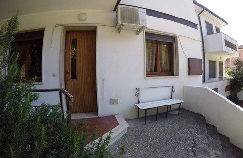 The holiday apartment is located in an apartment house and is furnished in a functional style. The property is located in a busy environment. LocationRosolina Mare. The holiday apartement is located on a enclosed plot, bordered by a fence. The landlord does not live in the house or on the property. Access is directly from the main road (asphalted). Parking (for 1 car) is available in a carport. Parking in the courtyard of the condominium Specialair conditioning.Facilities: washing machine. TV reception takes place via antenna. TV channels only in local language.For your safety, the accommodation is equipped with CO2 detector, smoke detector and fire extinguisher. Dogsallowed, EUR 25.00/pet per stay. DistancesShopping 200 m, restaurant 200 m, town center 300 m. bank in Piazza San Giorgio 300 m. railway station in Rosolina 8 km. airport in Venezia 57 km. Viale dei Pini: discotheque, pharmacy each 1,8 km. doctor 2 km. Main road 3 km. Children's playground 300 m. In summer: Adriatic Sea 500 m in Rosolina Mare (beach 500 m in Rosolina Mare featuring sand). golf in Albarella 16 km. boat launch in Porto Fossone 2 km. dog beach in Tamerici Dog 800 m. tennis, horse riding each 2 km in Tizè. DivisionHoliday apartment, 1 floor, 3 rooms (including 2 bedrooms), 35 sqm, in total 6 beds (including 2 additional beds). RoomThe entrance to your holiday apartment is located on the mezzanine floor and leads over 8 steps and the terrace directly into the kitchen-diner. Living room with 1 additional bed on couch/sofa, TV and dining area (6 seats). Bedroom with 1 double bed. Bedroom with 2 single beds and 1 additional bed on folding bed. Kitchen in the kitchen-diner with TV, dining area (6 seats), gas stove (4 flames), fridge (icebox) and access to the terrace. Bathroom with washing machine, shower, 1 washbasin, WC and bidet. Terms of lease and pricesIncluded in the priceparking place, electricity, gas, water, local tax (under 12 years). Side costs-Additionally(Payable when booking)/final cleaning obligatory 63 € per object per stay.Costs on the spot:/Obligatory:local tax by local tariff (if charged).On request:air conditioning 0,70 € per kilowatt hour based on usage. bed linen 10 € per person per stay.Deposit:EUR 50,-/object.