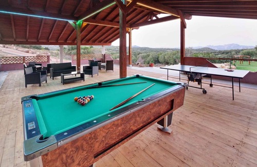 Our philosophy is the respect of nature. In fact, it is forbidden to drive in almost 10 hectares of land. Cooking, for example, is not with the pollutant gas, but with the induction cooker. We use water from natural sources, natural energy and everything is designed for a low environmental impact. The fully-equipped apartments offer sea views of the island of Caprera from the bedroom and the living room, wooden beds with orthopedic mattresses, fully equipped kitchen, veranda with sea views and bathrooms with towels and soaps. Access is via a side road (asphalted, unpaved, length 2500 m). Parking (for 7 cars) is available on the property and on the street in front of the house. Specialair conditioning, electric heating.Facilities: baby cot, high chair, internet access (WLAN), safe and washing machine. TV reception takes place via satellite.For your safety, the accommodation is equipped with CO2 detector and fire extinguisher. PoolAll pools are available for shared use. Outdoor pool (6,50 m x 17 m, depth 1,50 m). Leisure7 bicycles, fitness equipment, table tennis, table football, billiards, boccia / petanque and sailing boat. Dogsnot allowed. DistancesShopping 6 km, restaurant 1000 m, town center 6 km. pharmacy, bank each 5 km in Arzachena. Olbia: railway station 14 km, airport 15 km and indoor swimming pool 17 m. In summer: Tyrrhenia Sea 5 km in Capriccioli (beach 5 km in Capriccioli featuring sand). Capriccioli: diving 5 km, horse riding 6 km and fishing 9 km. boat rental in Olbia 10 m. golf, mini golf each 11 km in Porto Cervo. DivisionHoliday apartment, 1 floor, 3 rooms (including 2 bedrooms), 46 sqm, in total 5 beds (including 1 additional bed), on request additionally 1 child up to 2 years in a baby cot. RoomThe entrance to your holiday apartment is at ground level and leads over an external staircase and the 10 sqm terrace directly into the living room. Living room with 1 additional bed on couch/sofa, TV and with sea view. Bedroom with 1 double bed and 1 baby cot. Bedroom with 2 single beds. Kitchen with (induction stove), fridge (icebox) and electric kettle. Bathroom with shower and 1 washbasin. Terms of lease and pricesIncluded in the pricebaby cot, air conditioning, parking place, electricity, gas, water, local tax (under 12 years), bed linen, hand towels (first usage), Wireless Internet access. Side costs-Costs on the spot:/Obligatory:final cleaning 100 € per object per stay. local tax by local tariff (if charged).Deposit:EUR 100,-/object