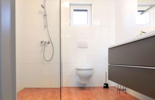 The holiday apartment is located in a semi-detached house, built in 2020 and is modern furnished. The domicile is also popular because of the sunny hillside location. For common use are available: garden shower and grill possibility.LocationKremenići. The landlord does not live in the house or on the property. The access goes via a side road (rubble or gravel). Parking lot (for 1 car) on the property. Specialair conditioner. Facilities: internet access (WLAN). Dogsnot allowed. DistancesShopping opportunity 1200 m, restaurant 800 m, town center 1500 m.In summer: Bathing possibility 1500 m in Malinska (beach 1500 m in Malinska with gravel and bathing plateaus). DivisionHoliday apartment, 2 floors, 2 rooms (including 1 bed rooms), 55 sqm, in total 4 beds. RoomThe entrance in your holiday apartment is located on the 1st floor and leads over an outside staircase directly in the aat-in kitchen. Eat-in kitchen with 1 additional bed on double sofa bed, TV, dining area (4 seats) and access to the balcony (10 sqm, 1 table, 4 chairs). Bedroom with 1 double bed. Kitchenette with electric stove (ceramic hob, 2 plates), extractor hood, dishwasher, fridge (icebox), microwave and electric kettle. Bathroom with shower and WC. Terms of lease and pricesIncluded in the priceair conditioning, parking place, electricity, gas, water, final cleaning, bed linen, hand towels, Wireless Internet access. Side costs-Additionally(Payable when booking)/registration fee obligatory 6,30 € per person per stay. local tax.Deposit:EUR 150,-/object