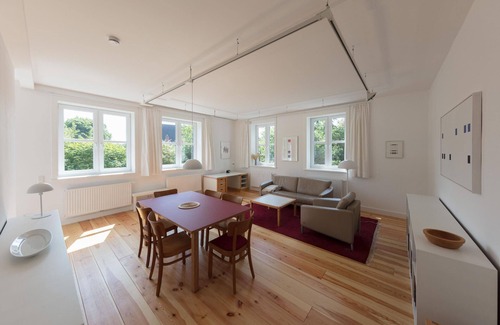 Discover the charismatic flair of the Künstlerhaus in Niebüll, an ideal holiday flat for guests who want to combine rural tranquillity with cultural history. "Studio Andreas", located in the former studio of the renowned artist Andreas Brandt, is the perfect accommodation for up to 4 people looking for an extraordinary living ambience. The flat on the ground floor of this historic property promises an unforgettable stay in Schleswig-Holstein.